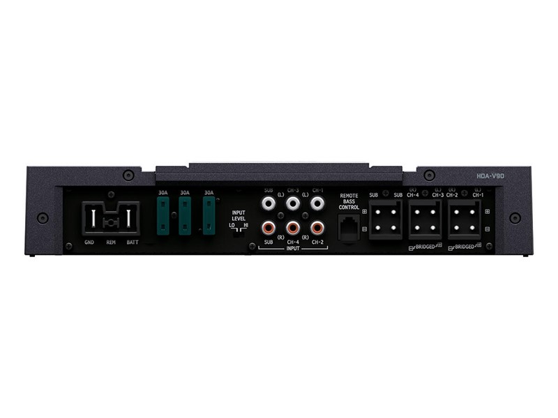 Krátký popis Pětikanálový výkonový zesilovač - Hodnoty efektivního výkonu: Na kanál do 2 Ω, 14,4 V: 4x 100 W + 1x 500 W, na kanál do 4 Ω, 14,4 V: 4x 75 W + 1x 300 W, přemostění do 4 Ω, 14,4 V: 2x 200 W - Provedení kanálů: 5/4/3 kanály - Zesilovací obvod třídy D - Napájecí zdroj a konektory reproduktorových kanálů - Měděné šasi - Horní ovládací panel (pod horním krytem) - Černá deska s obvody - Konstrukce bez vypínání - Tepelná ochrana - Jednostranný terminál - Modrá LED dioda napájení