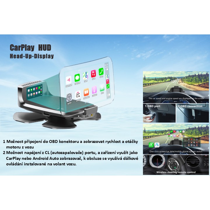 Systém s projekčním HUD displejem, během jízdy systém promítá údaje o rychlosti, otáčkách motoru nebo promítá informace z telefonu pomocí APP CarPlay nebo Androi Auto do zorného pole řidiče přímo na výklopný reflexní panel (zrcátko), kovová nanotechnologie eliminuje zbytečné odrazy na odrazné ploše pro jasnější zobrazení.