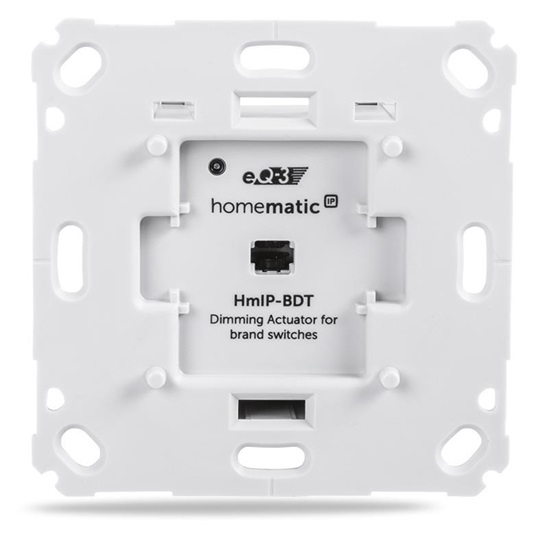 Krátký popis Stmívací akční člen - zápustná montáž HmIP-BDTProgramovatelný bezdrátový Stmívací akční člen (HmIP-BDT) pro zápustnou montáž, napájený ze sítě 230 V, je součástí systému chytré domácnosti Homematic IP.Zařízení může ovládat osvětlení, žaluzie, rolety neb