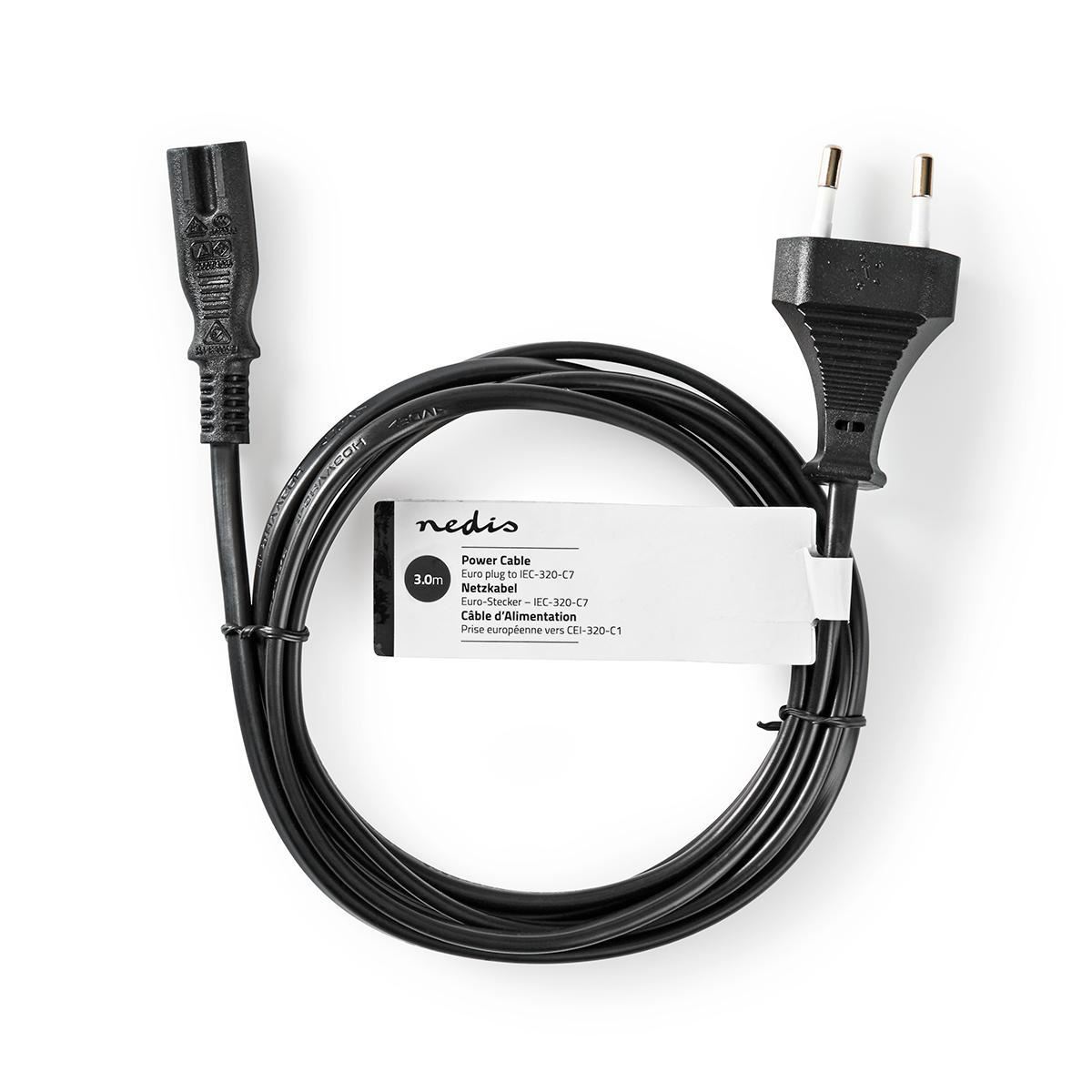 Síťový napájecí kabel s konektory euro zástrčka - 2 pinová “osmičková” zásuvka. Kabel je určen k připojení např: HIFI zařízení, komponentů, věží, napájecích zdrojů, počítačového příslušenství atd... do elektrické sítě.