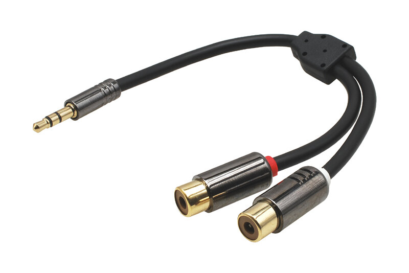 Krátký popis HQ signálová kabelová redukce 2x CINCH samice - JACK 3,5mm samec