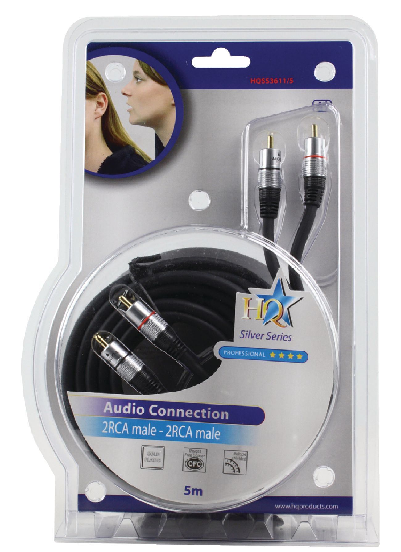 Krátký popis Audio kabel s 24k zlacenými konektory CINCH 2x zástrčka na obou koncích, délka 5m
