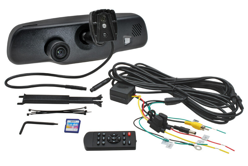 Kamera je umístěná v přední části zpětného zrcátka, tak aby monitorovala situaci před vozidlem. Záznam obrazu a zvuku z této kamery je nahráván na SD kartu umístìnou ve slotu v horní části zpětného zrcátka. Záznam je nahráván ve smyčce po jednotlivých blocích současně s informací o datu a čase pořízení. Zařízení umožňuje zobrazení zpětné parkovací kamery po zařazení zpátečky. Tato kamera není součástí balení.