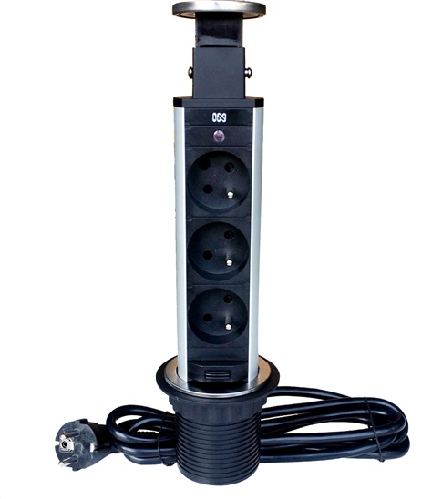 Je určena pro montáž do kancelářských stolů, kuchyňských linek apod.Instalace je jednoduchá stačí vyvrtat otvor o průměru 6 cm děrovací pilou.Tento blok má 3 zásuvky. Technická charakteristika:3x zásuvky 2P+T,16A, 230V~ MAX 3680W,kabel: 1.5mm2, 2m