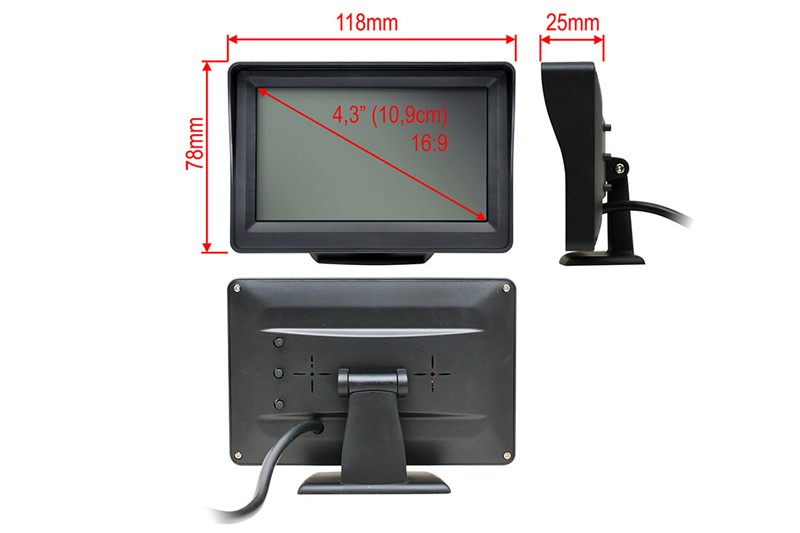 TM-4301 4,3" TFT univerzální monitor 16:9 pro parkovací kameru