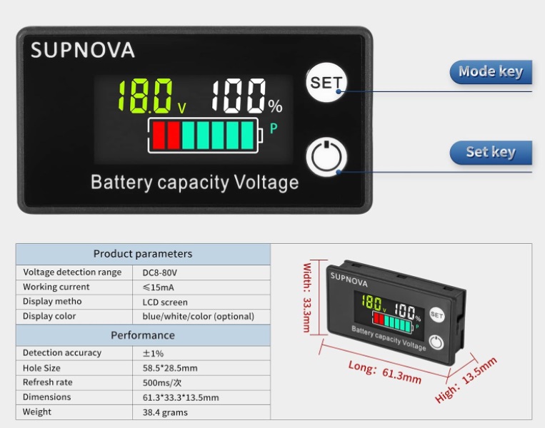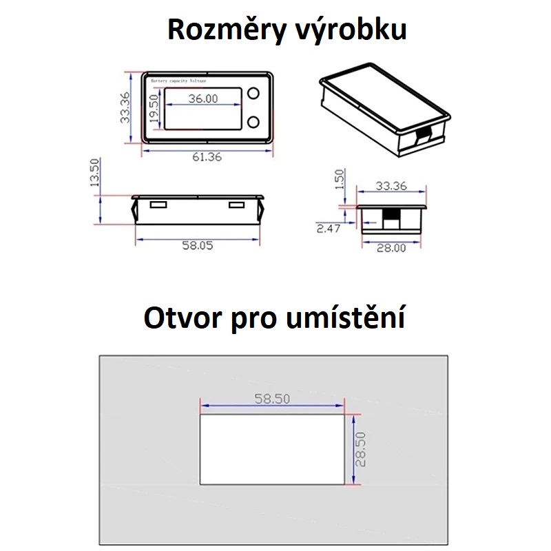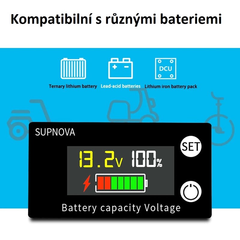 Krátký popis Indikátor kapacity baterie slouží k prevenci poruch akumulátoru a ke kontrole stavu a zbývající energie v baterii.