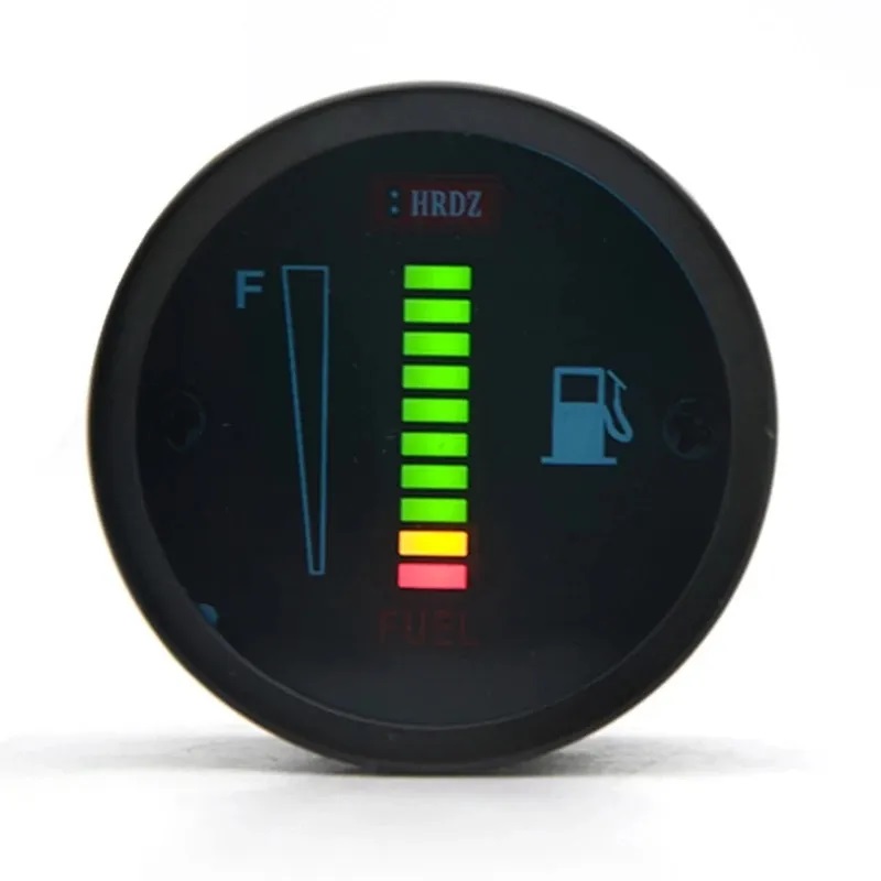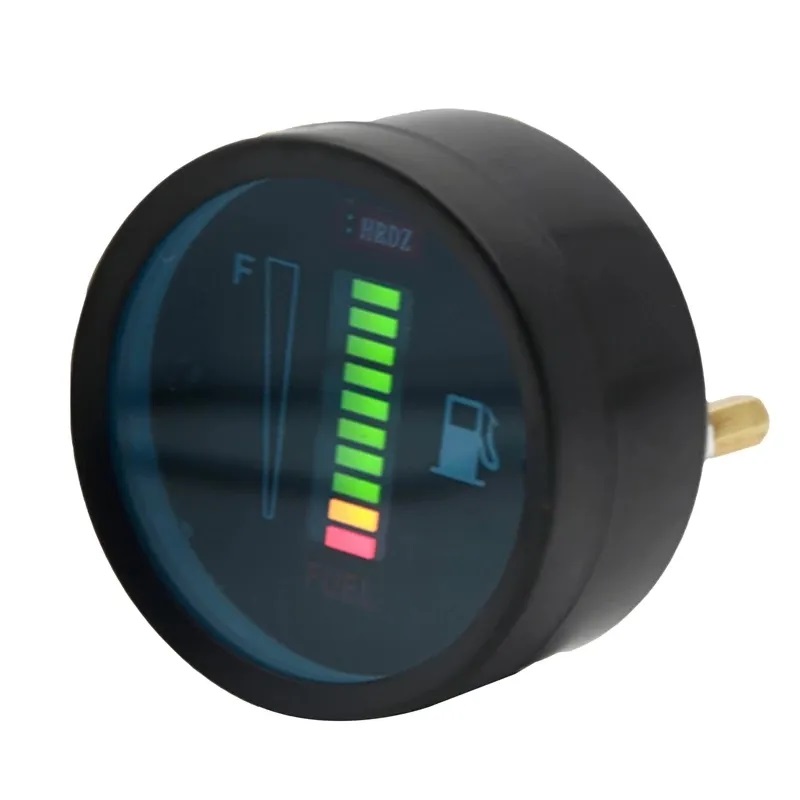 Digitální kulatý palivoměr pro benzin, naftu nebo jiná paliva a kapaliny, s nastavovacím trimrem pro vyladění přesného odečtu podle vašeho vlastního plováku.