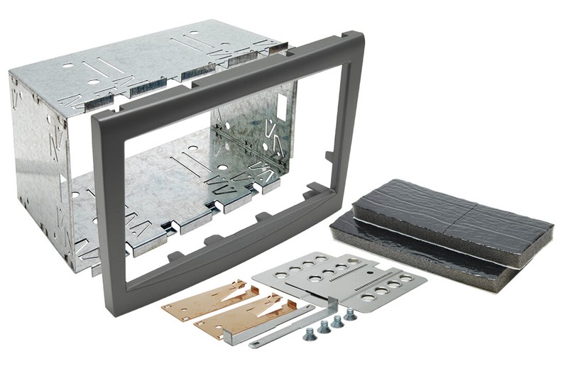 kovový instalační rámeček, plastový adaptér 2DIN, drobný instalační materiál, instalační návod