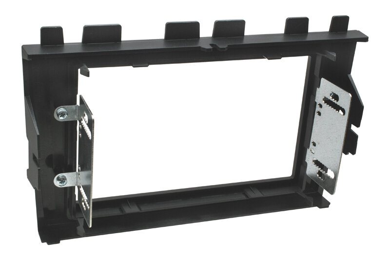 Sada obsahuje: Plastový adaptér, vnitřní vymezovací rámeček, boční kovové úchyty, instalační materiál