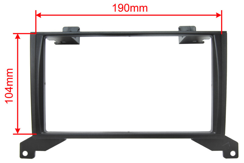 Rozměry otvoru odpovídají rozměrům čelního panelu 2DIN autorádií Kenwood, Alpine, Clarion, Pioneer, Macrom, Autosonik....
