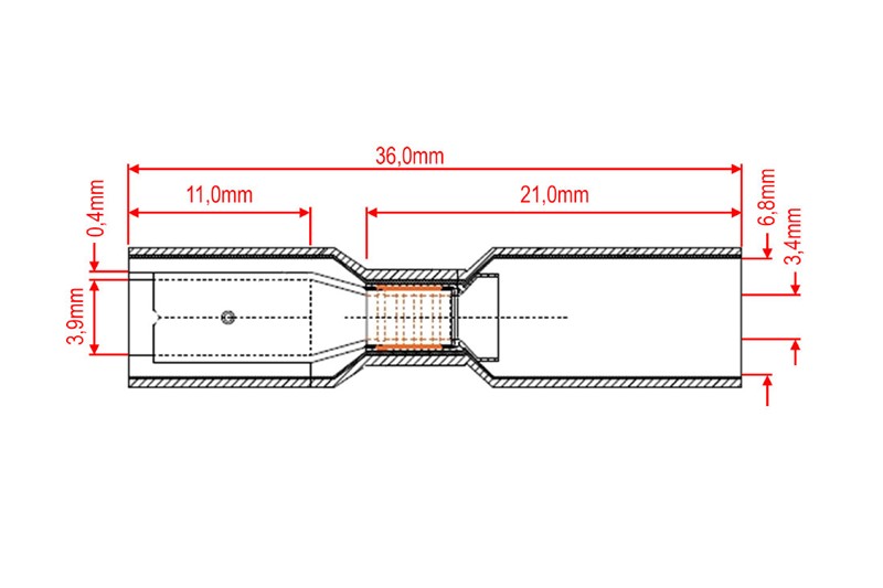 Izolovaný konektor faston - samice plochá Ø4mm izolovaná teplem smrštitelnou trubicí s lepidlem.