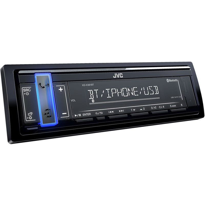 Autorádio s FM/MW/LW, bez mechaniky s USB, čelním AUX vstupem a technologií Bluetooth.