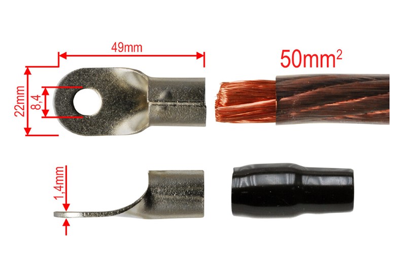 Krátký popis Kabelová oko pro kabel 50mm² / 8,4mm / černá izolace