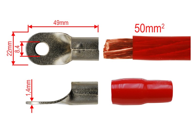 Krátký popis Kabelová oko pro kabel 50mm² / 8,4mm / rudá izolace