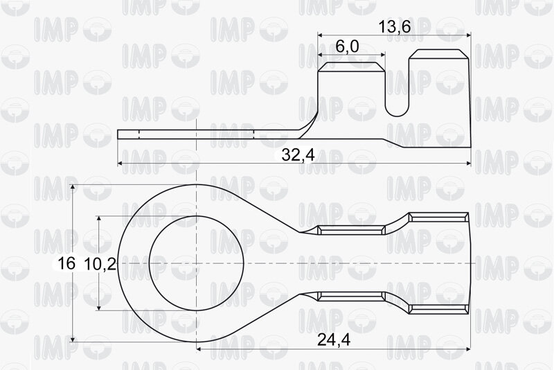 Krátký popis Kabelové oko Ø 10,2mm, vodič: 3-6mm², mosaz, balení 100ks