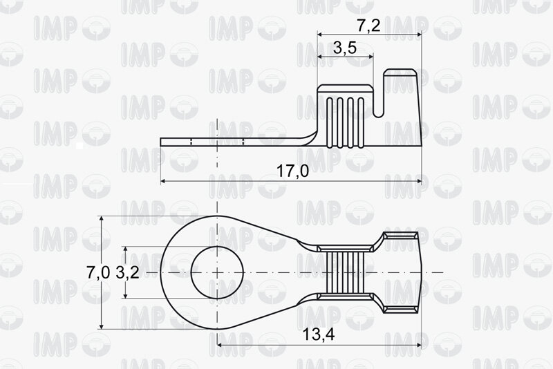 Krátký popis Kabelové oko Ø 3,2mm, vodič: 0,5-1,5mm, mosaz, balení 5000ks