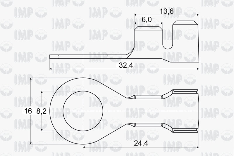 Krátký popis Kabelové oko Ø 8,2mm, vodič: 3-6mm², cínovaná mosaz, balení 100ks