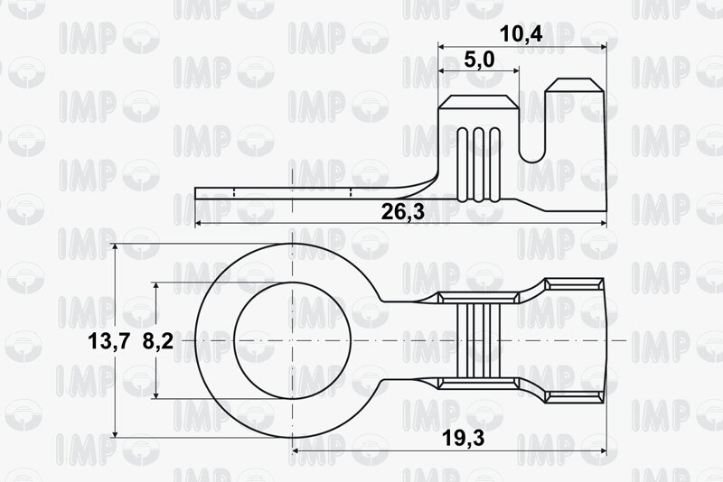 Krátký popis Kabelové oko Ø 8,2mm, vodič: 3-6mm², cínovaná mosaz, balení 100ks