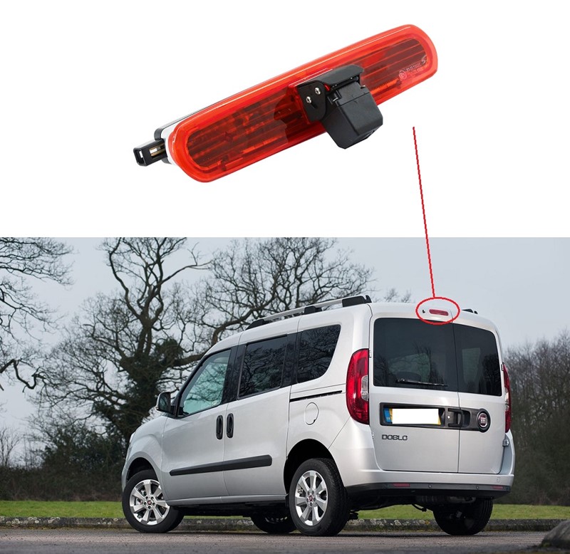 Barevná kamera zabudovaná ve 3. brzdovém světle. Součástí je LED brzdové světlo pro vozy Fiad Doblo (2010-) a Opel Combo (2011-2018).