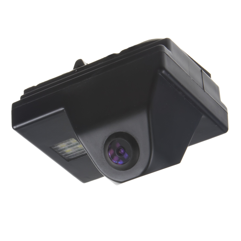 Barevná kamera do osvětlení pro SPZ. Je určena pro zabudování do osvětlení nad zadní registrační značku vozů Toyota. Vhodné např. pro kombinaci s monitorem, nebo s adaptéry mi-xxx pro připojení k originální navigaci. Kamera zároveň zobrazuje pomocné trajektorie pro parkování. Montáž: Vyjmete 1 lampičku nad zadní SPZ a místo ní vložíte do originálního otvoru tuto kameru, která zároveň nahradí původní sklíčko osvětlení SPZ.