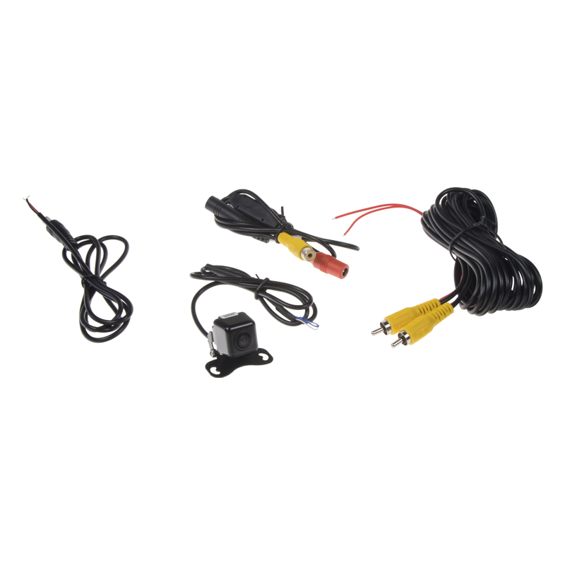 Miniaturní NTSC barevná kamera určená pro volnou montáž případně pro zabudování nejlépe nad zadní registrační značku vozidla. Kamera zároveň zobrazuje pomocné trajektorie pro parkování (volitelné).