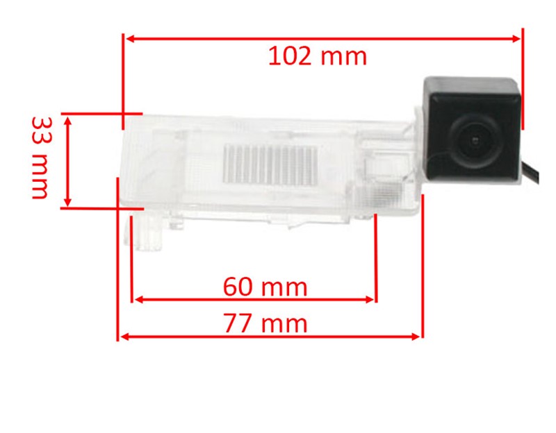 Barevná parkovací kamera do osvětlením pro SPZ. Je určena pro zabudování do osvětlení nad zadní registrační značku Škoda a VW. Vhodné např. pro kombinaci s monitorem, nebo s adaptéry mi-xxx pro připojení k originální navigaci.Kamera zároveň zobrazuje pomocné trajektorie pro parkování. Montáž: Vyjmete kryt 1 lampičky nad zadní SPZ a místo ní vložíte do originálního otvoru tuto kameru, která zároveň nezamezí původnímu osvětlení SPZ.