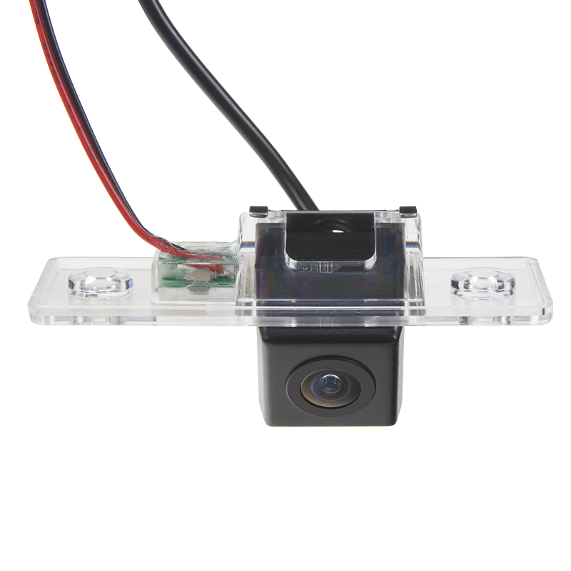 Barevná kamera s LED osvětlením pro SPZ. Je určena pro zabudování do osvětlení nad zadní registrační značku Škoda a Volkswagen. Vhodné např. pro kombinaci s monitorem, nebo s adaptéry mi-xxx pro připojení k originální navigaci. Montáž: Vyjmete 1 lampičku nad zadní SPZ a místo ní vložíte do originálního otvoru tuto kameru.