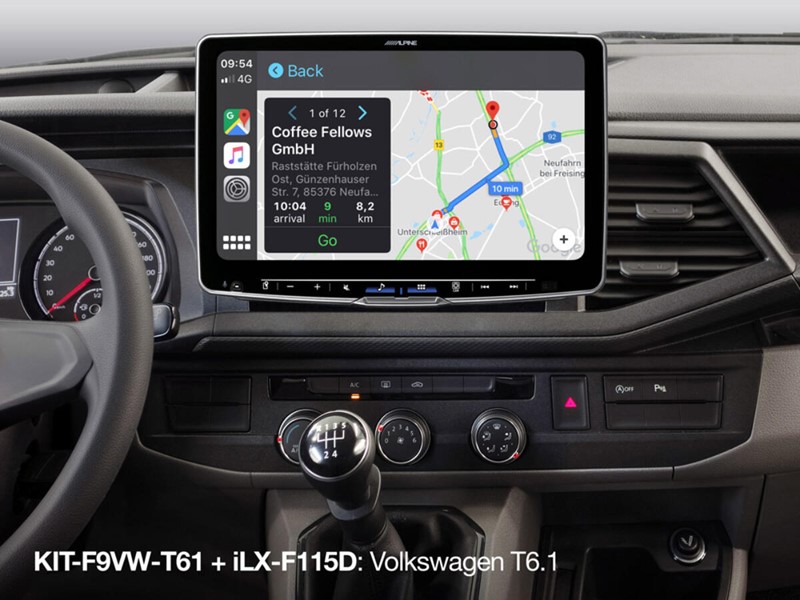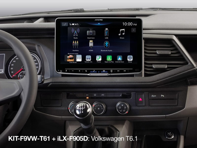 • Instalační sada KIT-F9VW-T61 umožňuje dokonale integrovat 1DIN systém Alpine Halo s 9palcovou nebo 11palcovou obrazovkou (INE-F904D, INE-F904DC, iLX-F115D, iLX-F905D) do vozidla Volkswagen T6.1 (typ 7H / 7J modelový rok 11/2019 - 2022).
