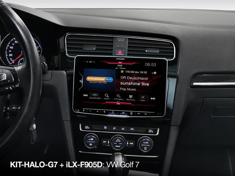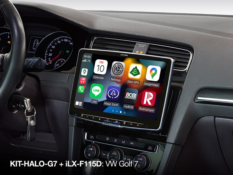 • Instalační sada KIT-HALO-G7 umožňuje dokonale integrovat 1DIN systém Alpine Halo s 9palcovou (INE-F904D, INE-F904DC, iLX-F905D) nebo 11palcovou obrazovkou (iLX-F115D) do vozu Golf 7 (modelový rok 08/2013 - 02/2017).