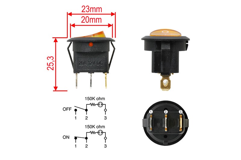 Krátký popis Kolébkový spínač - oranžové celoplošné podsvětlení, 12V / 20A