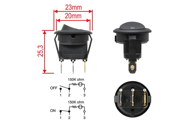 Krátký popis Kolébkový spínač - zelené LED podsvětlení, 12V / 20A