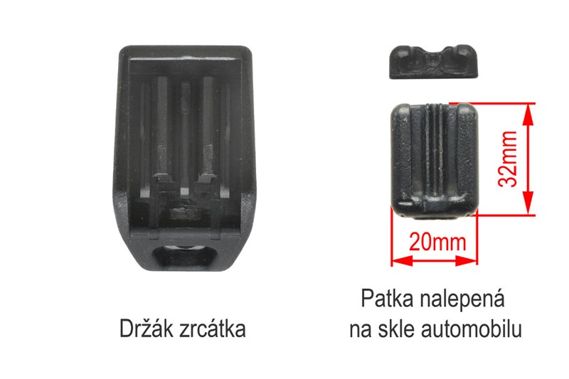 - zrcátko je umístěno na čelním skle na místě originálního zrcátka