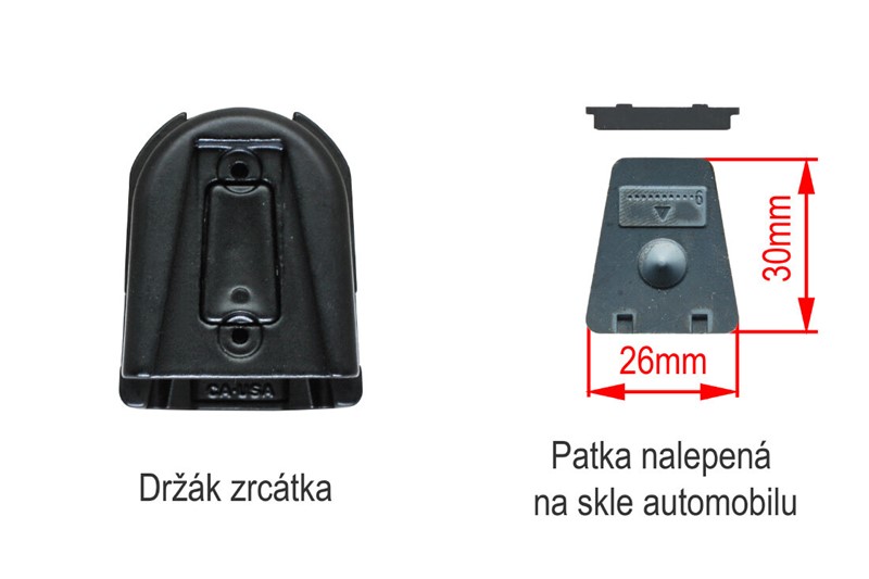 - zrcátko je umístěno na čelním skle na místě originálního zrcátka