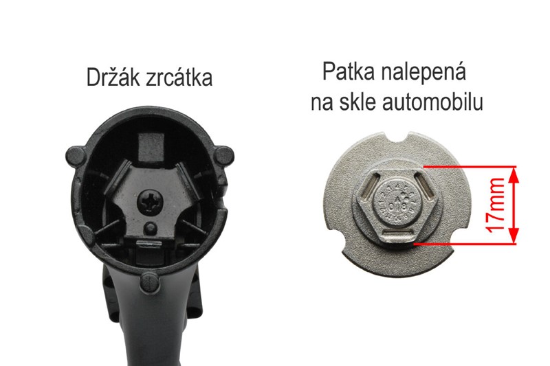 - zrcátko je umístěno na čelním skle na místě originálního zrcátka