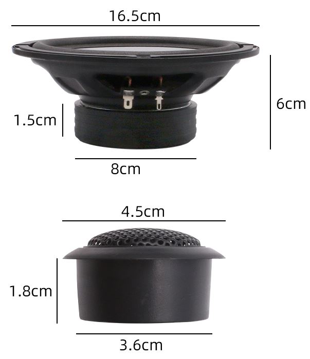 Krátký popis Vysoce kvalitní komponentní dvoupásmový kit, středobasový reproduktor + výhybka a výškové reproduktory.