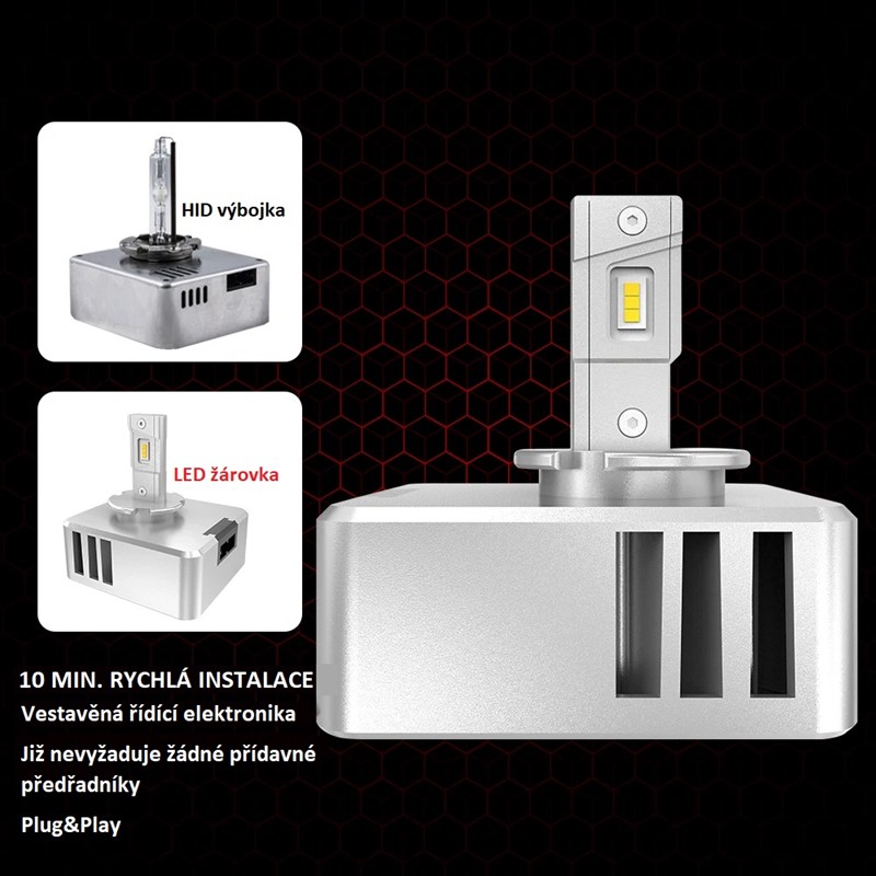 Instalace a deinstalace LED žárovek je velice jednoduchá a rychlá, lze kdykoliv vrátit zpět původní výbojky např. před návštěvou STK nebo při prodeji vozu.