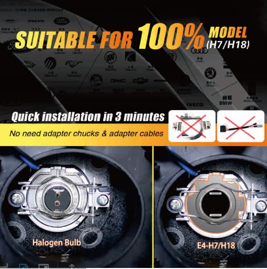 Nová generace LED autožárovek E4 s paticí H7 - bílá, 2x LED čip GC-1860.