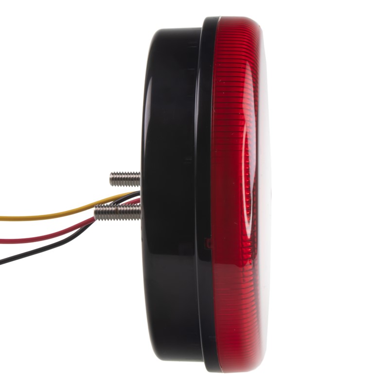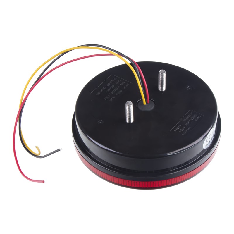 Krátký popis Lampa zadní koncová/brzdová - LED, kulatá, červené světlo.   Technické parametry • napájení: 12/24 V • homologace ECE R7, R10 • rozměry: průměr 122 x 40 mm • rozteč montážních otvorů: 45 mm • délka připojovacích vodičů: 260 mm • vodotěsné IP67 • materiál: plast ABS/PMMA • pracovní teplota: -40⁰C - +65⁰C   Připojení vodičů • černý vodič - zem • žlutý vodič - poziční světlo • červený vodič - brzdové světlo