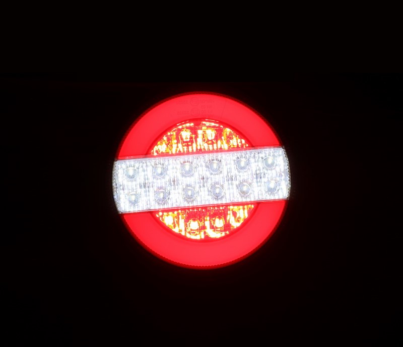 Lampa zadní sdružená - LED, kulatá, červené koncové/mlhové/bílé couvací světlo.