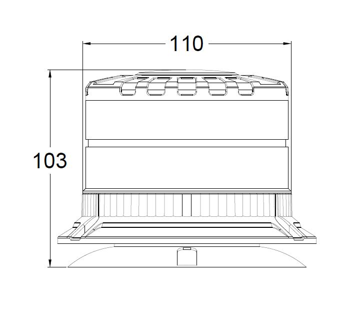 • rozměry: průměr základny 136 mm, průměr krytu 110 mm, výška 103 mm