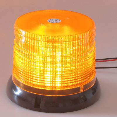 Výstražný oranžový maják s LED technologií a možností zábleskového nebo otočného provozu (dva ovládací vodiče). Určen pro pevnou montáž.