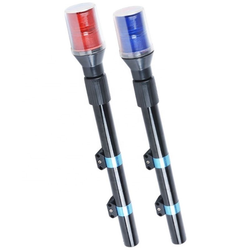 Profesionální modrý LED maják s výrazným výstražným efektem, s teleskopickou tyčí, určen pro montáž na motocykl.