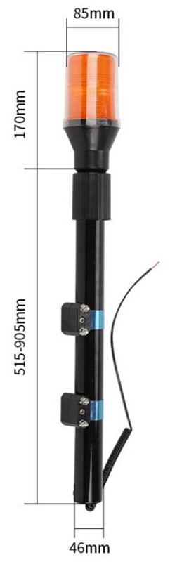 Krátký popis Profesionální modrý LED maják s výrazným výstražným efektem, s teleskopickou tyčí, určen pro montáž na motocykl.