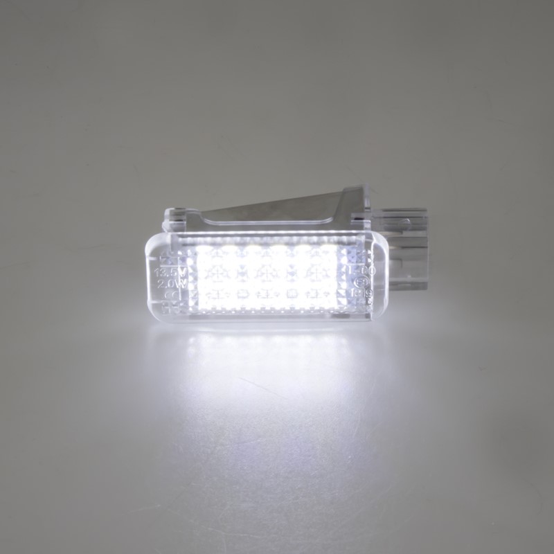 Náhrada originálního světla pro osvětlení interiéru - prostor pro nohy pod předními sedadly automobilu, ve vozech koncernu VW, Škoda, Lamborghini. Jedná se o přímou náhradu, což zajišťuje jednoduchou montáž. Tyto LED světla dají vašemu vozu originální vzhled tím, že změní nažloutlé světlo klasické žárovky na velmi jasné bílé světlo vysoké intenzity podobné světlu z xenonů.