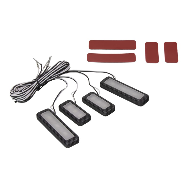 4ks světel, díky 3M nálepce na zadní straně světla se dá přilepit na patřičné místo.