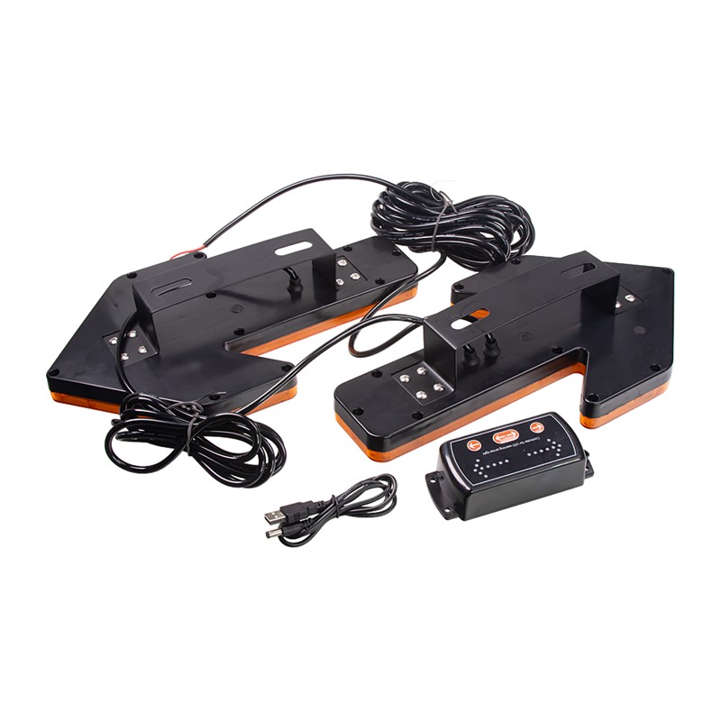 Směrová přídavná světla LED jsou určena např. pro označení stojícího vozidla při práci na silnici. Zároveň je vhodné použití např. při označení různých objektů bránících provozu při práci na silnici. Součástí je bezdrátový ovládací panel s LED displejem, který slouží pro ovládání a změnu režimů.