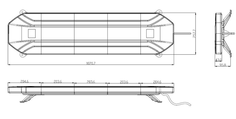 • rozměry: 1021 x 257 x 43 mm (výška včetně držáku 95,8 mm)