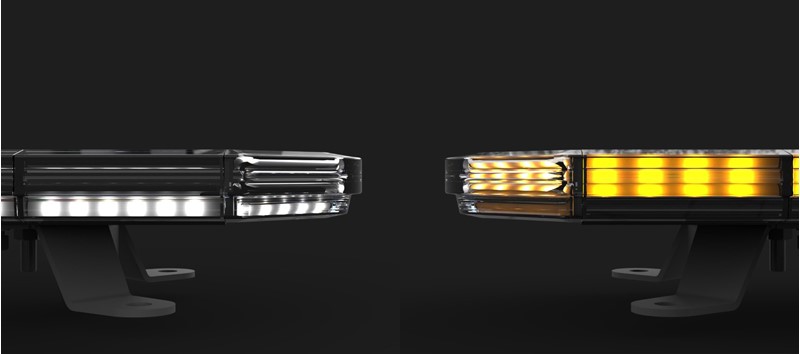 Nejtenčí a nejlehčí LED rampa na trhu, jediná, která kombinuje 2 dostupné barvy v jedné rampě (2V1) - oranžová a bílá barva světla.
