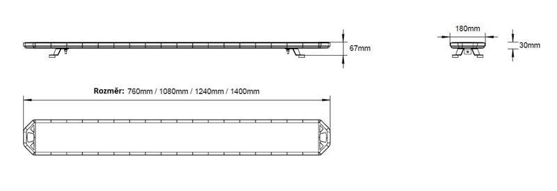 • rozměry: 1080 x 180 x 30 mm (výška včetně držáku 67 mm)