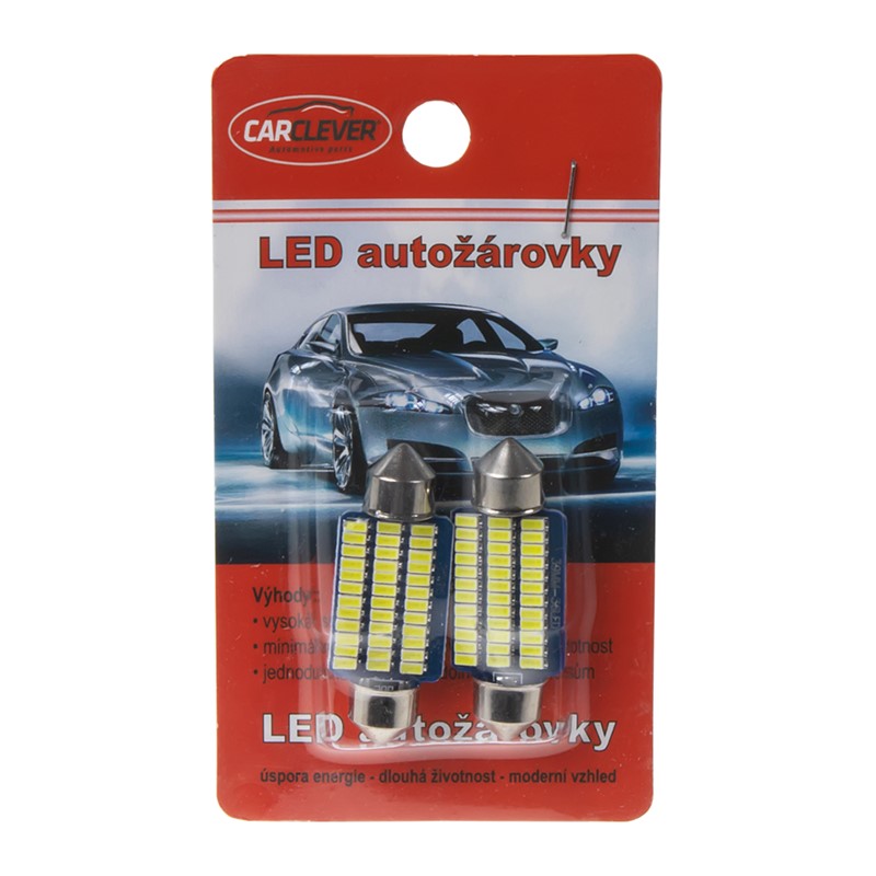 Krátký popis LED žárovka s paticí sufit (39 mm), bílá, 36x vysocesvítivé SMD LED diody 4014SMD.   Technické parametry • patice SV8,5 - sufit • barva bílá • 36x vysocesvítivé SMD LED diody 4014SMD • světelný tok 350LM • napájecí napětí 12 V • odběr proudu 110 mA • rozměr žárovky: délka 39 mm, šířka 14 mm • cena za ks, balení 2 ks (pár)   Vlastnosti • vhodné např do osvětlení SPZ nebo vnitřních lapiček